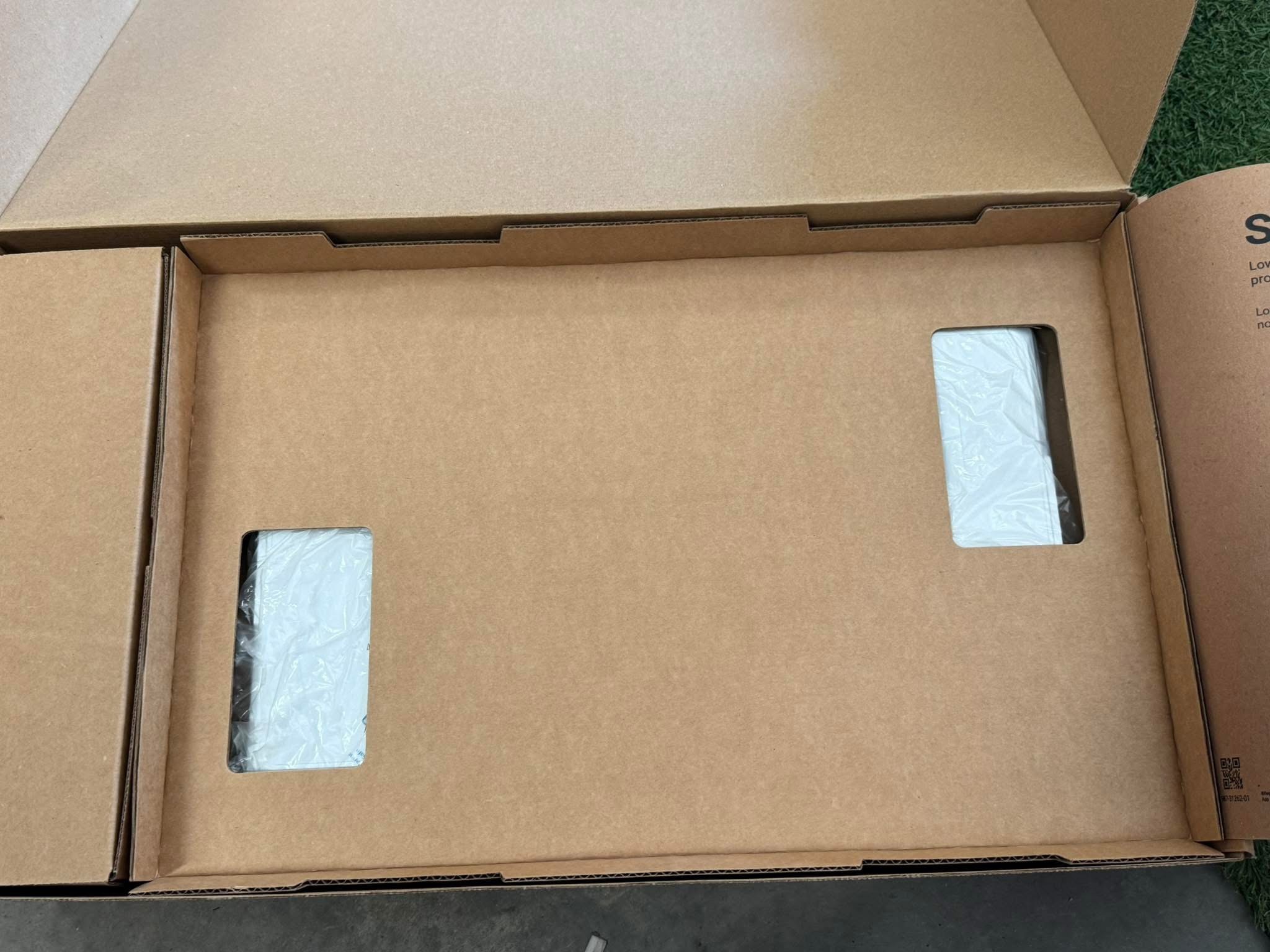 Open Box. Everything works as it should and all the mounts, cords and hardware are included in the box. This