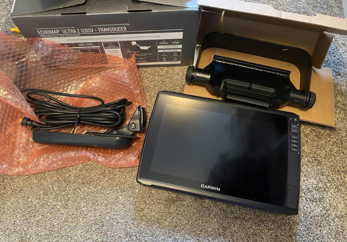 1. Like new Garmin Ultra 2 126sv fish Finder. This was $3100 before taxes and I purchased direct from garmin. It will come with the gt56 transducer that has side scan, down view, and traditional sonar. This is also preloaded with navionics mapping.