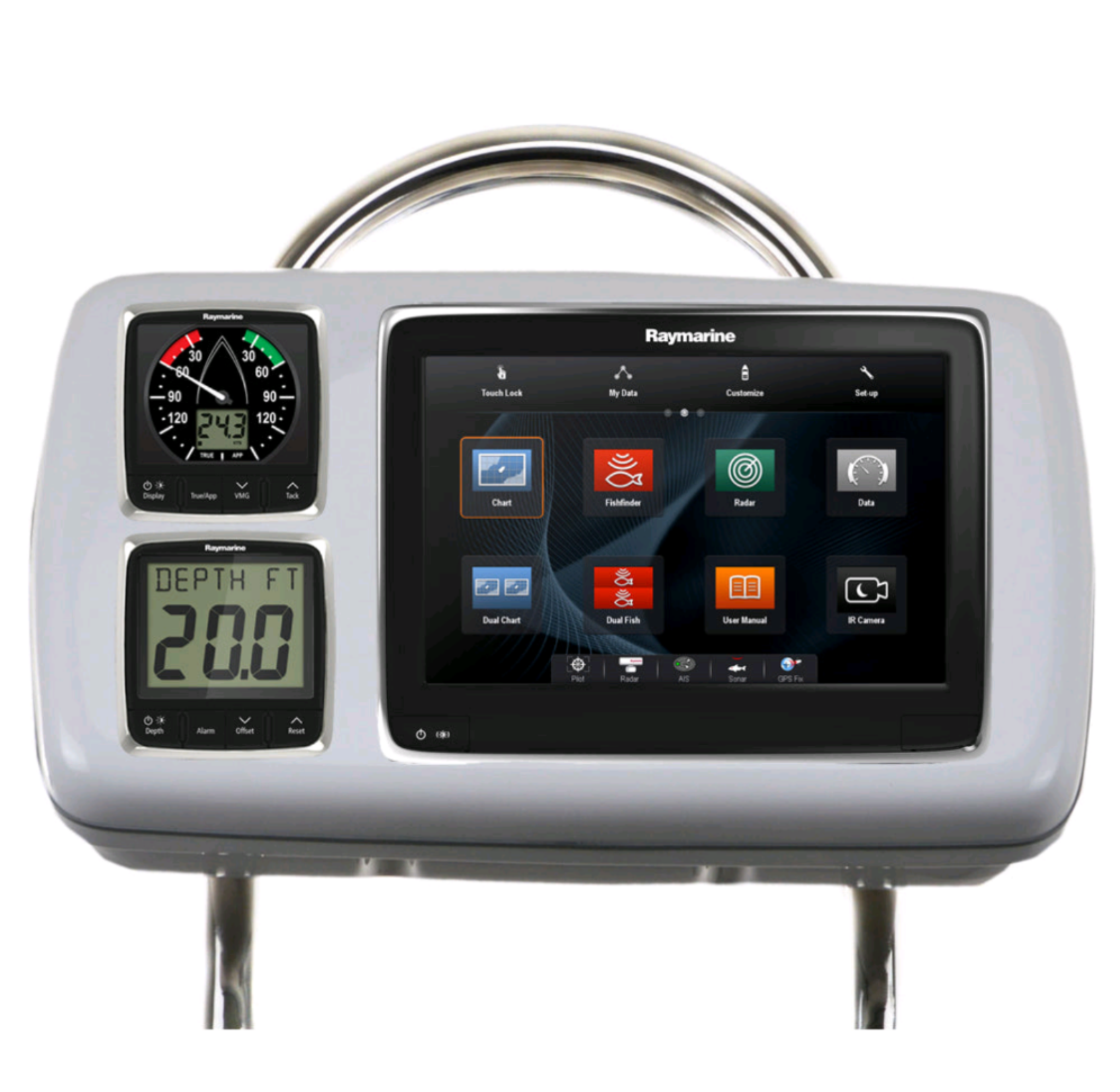 GP1170-05 SystemPod Pre-Cut for Raymarine Axiom Pro 12/Axiom 2 Pro 12/eS127/eS128 on the right AND 2 additional instruments (3.6″ holes) on the left for 9.5″ wide guard